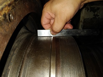 企業2800紙機主要生產文化用紙,其38#烘缸引紙輪軸承位磨損,引紙輪運行中軸向外移,只是引紙繩卡在引紙輪與烘缸軸之間,造成引紙系失效。按照傳統修復工藝,38#烘缸需要下線維修,因拆卸困難以及維修周期制約,企業尋找到索雷工業在線修復工藝,這對此問題,索雷工程師根據企業提供的設備參數和現場磨損數據以及圖片信息,給予科學的分析以及具體的修復方案,雙方展開了積極地合作。